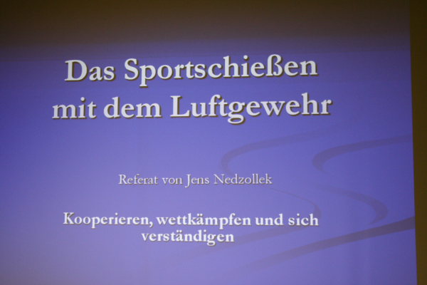 Zur besser Vertiefung stand den Zuhörern eine vortragsbegleitende Präsentation zur Verfügung. Zum Ende seines Vortrages demonstrierte Jens mit dem Luftgewehr die Einrichtungsphase und den Übergang in die Probeschüsse. Danach stand er für Fragen zur Verfügung.